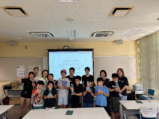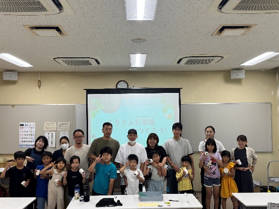 2025年8月23日に「親子で楽しむものづくり工作教室」を中城村吉の浦会館にて実施した.午前中に実施した「LEDランタンづくり」では,はんだごてを用いてLEDが点灯する回路の製作を行った.さらにペットボトルを用いた浮沈子を製作し,光と浮力の不思議を体験した.午後の小学校低学年を対象とした「ミラクル万華鏡」では“光は波である”をキャッチフレーズに,偏光板とセロファンテープの特性を利用した万華鏡を製作した.こどもたちは一生懸命に製作に取り組み,作品が完成すると大きな驚きや喜びの声があがっていた.