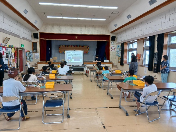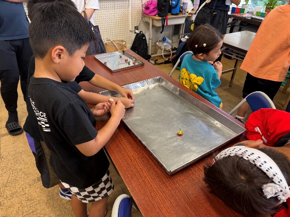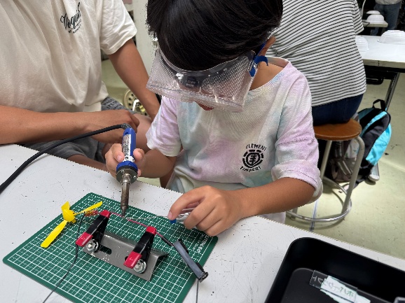 2025年8月30日(土)に琉大附属小学校にて出前講座「「ホバークラフト」「折り紙建築」「金属コマをつくろう」「ヤギ先生の島やさい教室」を実施した.