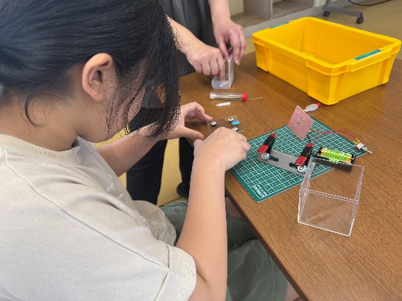 2025年8月25日に北谷町北玉区公民館にて出前講座「LEDランタンづくり」を実施した.「LEDランタンづくり」では,はんだごてを用いてLEDが点灯する回路の製作を行った.さらにペットボトルを用いた浮沈子を製作し,光と浮力の不思議を体験した.こどもたちは一生懸命に製作に取り組み,作品が完成すると大きな驚きや喜びの声があがっていた.