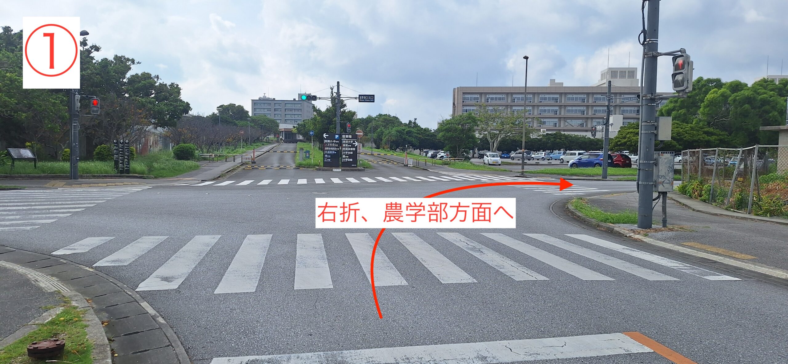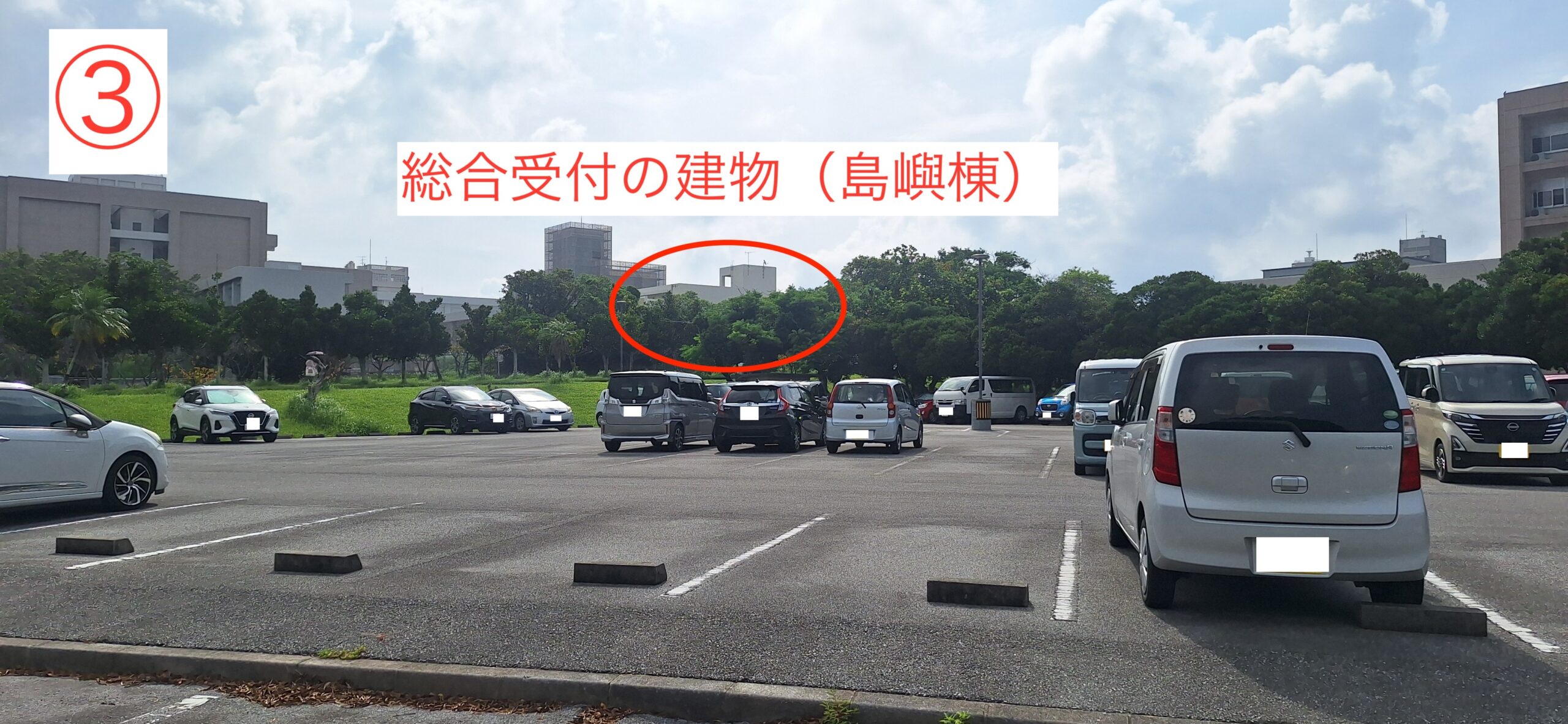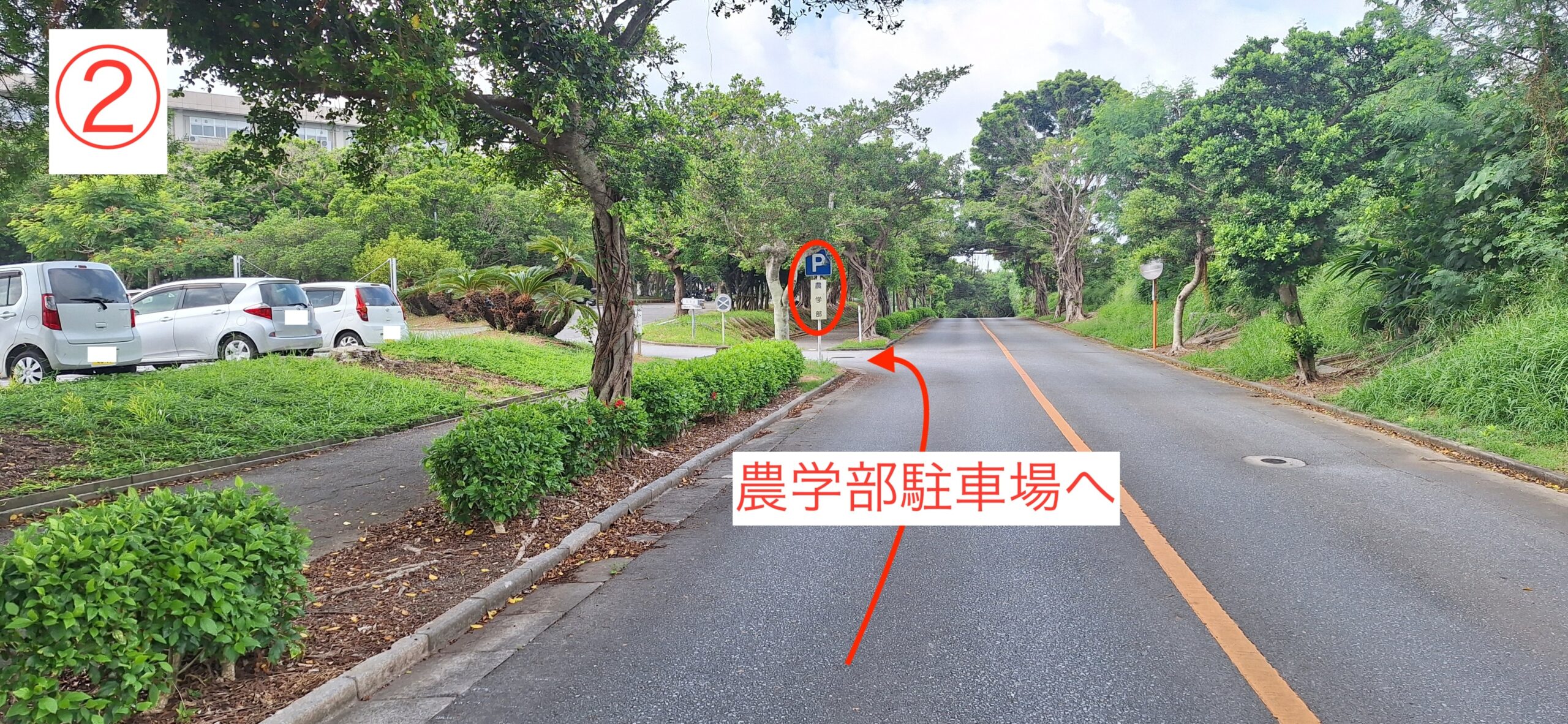 ※農学部駐車場から島嶼棟へは徒歩での移動となります。
